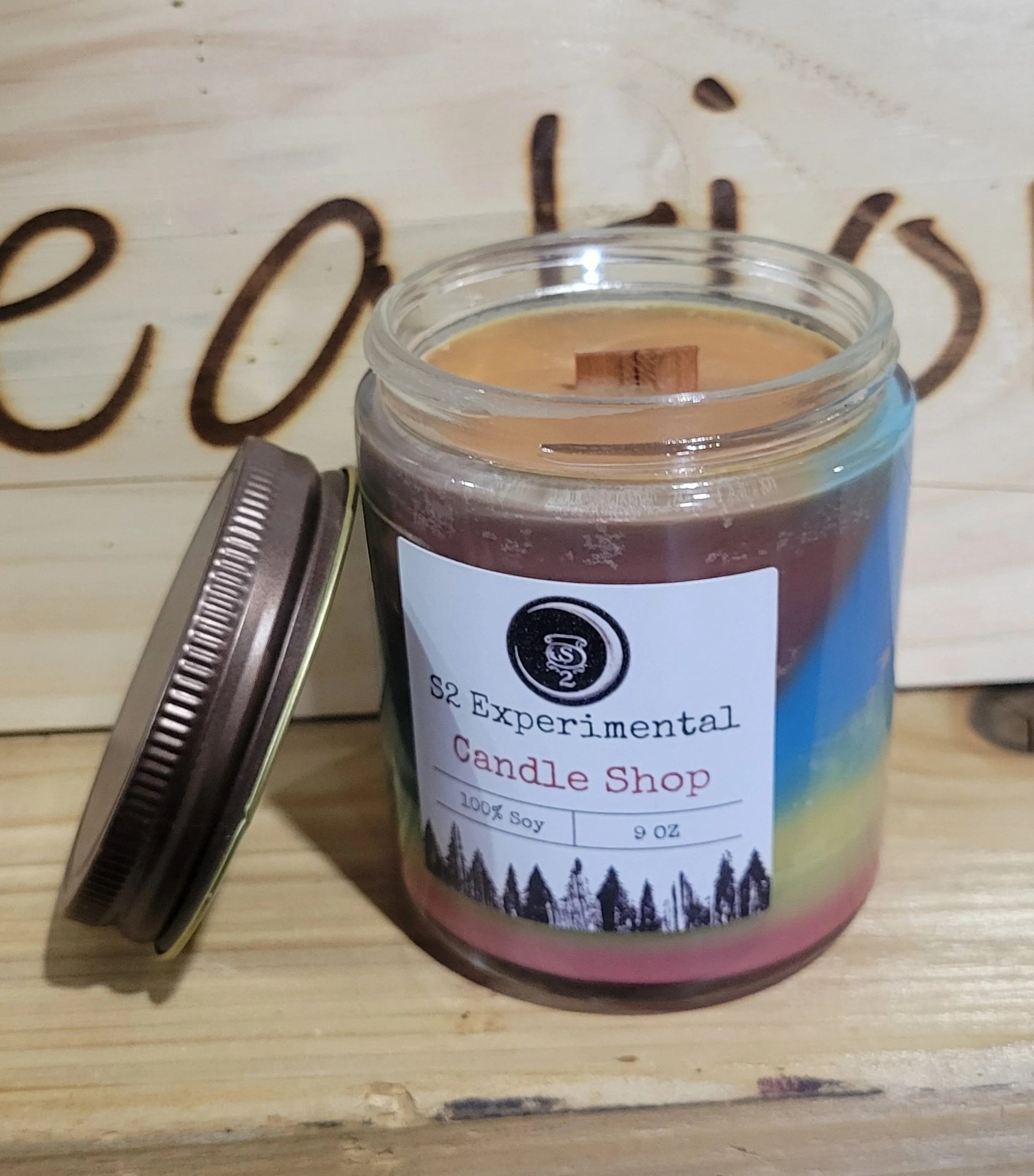Discover the essence of our wooden wick soy candles - a local Wisconsin creation that sparked in 2020. Illuminate your space with our unique scents and cozy vibes.